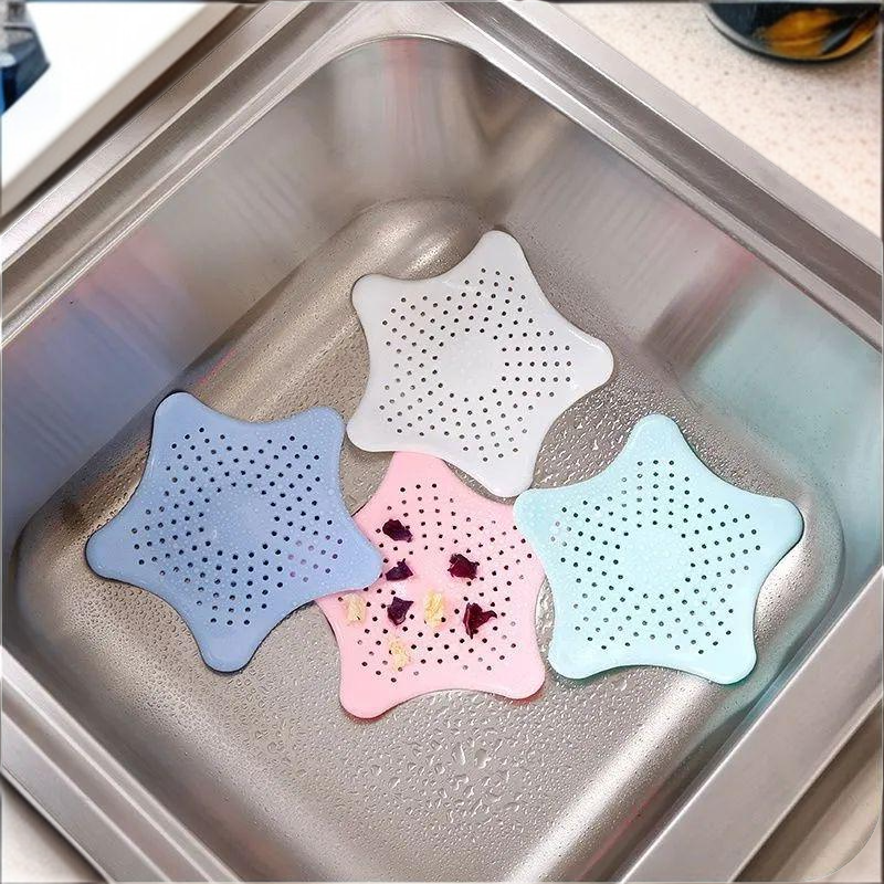 شبكة تصفية سيليكون مضادة للانسداد للمطبخ والحمام، مصيدة شعر على شكل نجمة